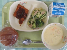 ブロッコリーサラダ、コーンスープ